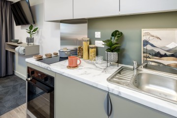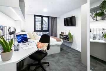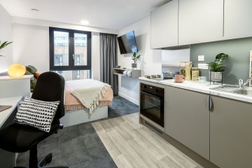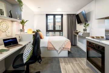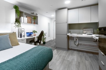 💰ASK ABOUT OUR CASHBACKS💰 Superior in all aspects, our superior studio rooms offer expansive spaciousness with 24.2-32.7sqm. These student accommodation rooms come fully equipped with a double bed, desk area, en-suite bathroom, and your very own private, fully-fitted kitchenette.