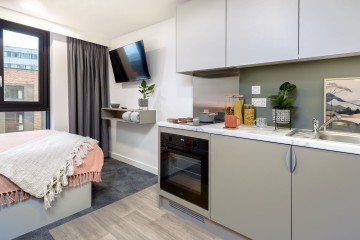 💰ASK ABOUT OUR CASHBACKS💰 Our private student accommodation in Nottingham is perfect for making a home-away-from-home when moving to university! These studio rooms come fully equipped with a double bed, desk area, en-suite bathroom, and your very own private, fully-fitted kitchenette.