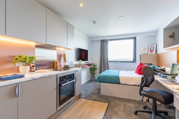 **Semester Stays Available** 💰ASK ABOUT OUR CASHBACKS💰 Our studio plus rooms at true Salford each contain a double bed, kitchenette and ensuite shower room. Everything you need in a comfortable, luxurious private living space.