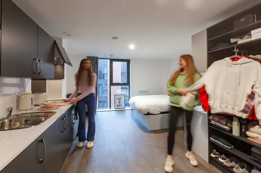 Our studios have an ensuite bathroom and kitchen area within the room meaning you won’t have to share a thing. If you have booked an apartment, then you will have a private ensuite but share a communal kitchen, dining and lounge area perfect for relaxing with your friends.