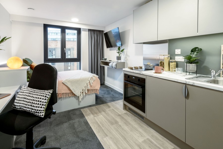 💰ASK ABOUT OUR CASHBACKS💰 Our private student accommodation in Nottingham is perfect for making a home-away-from-home when moving to university! These studio rooms come fully equipped with a double bed, desk area, en-suite bathroom, and your very own private, fully-fitted kitchenette.