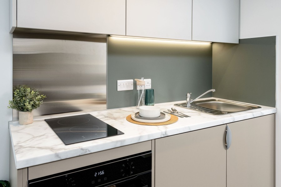 Our private student accommodation in Sheffield is perfect for making a home-away-from-home when moving to university! These studio rooms come fully equipped with a double bed, desk area, en-suite bathroom, and your very own private, fully-fitted kitchenette.